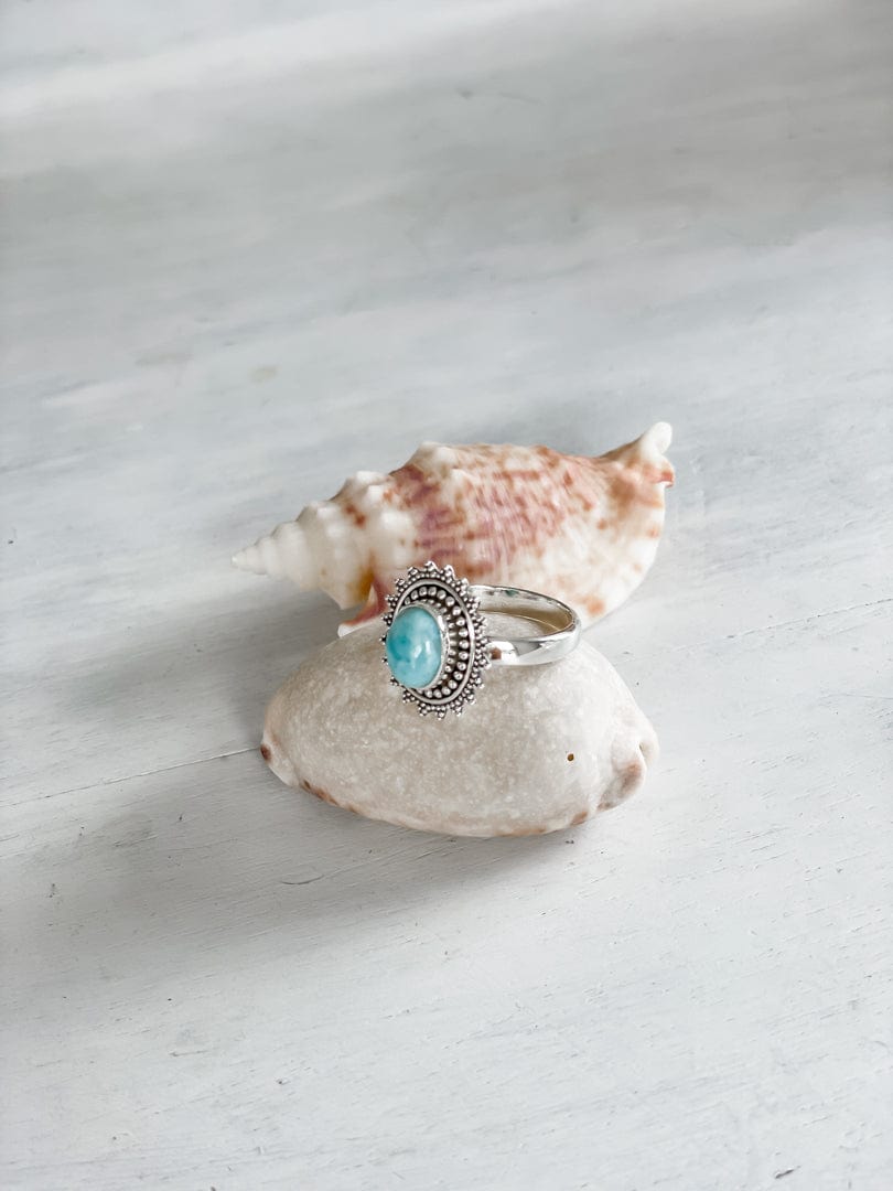 Stunning Boho Silver Ring with Larimar Inlay. Perfect addition to your boho jewellery collection.