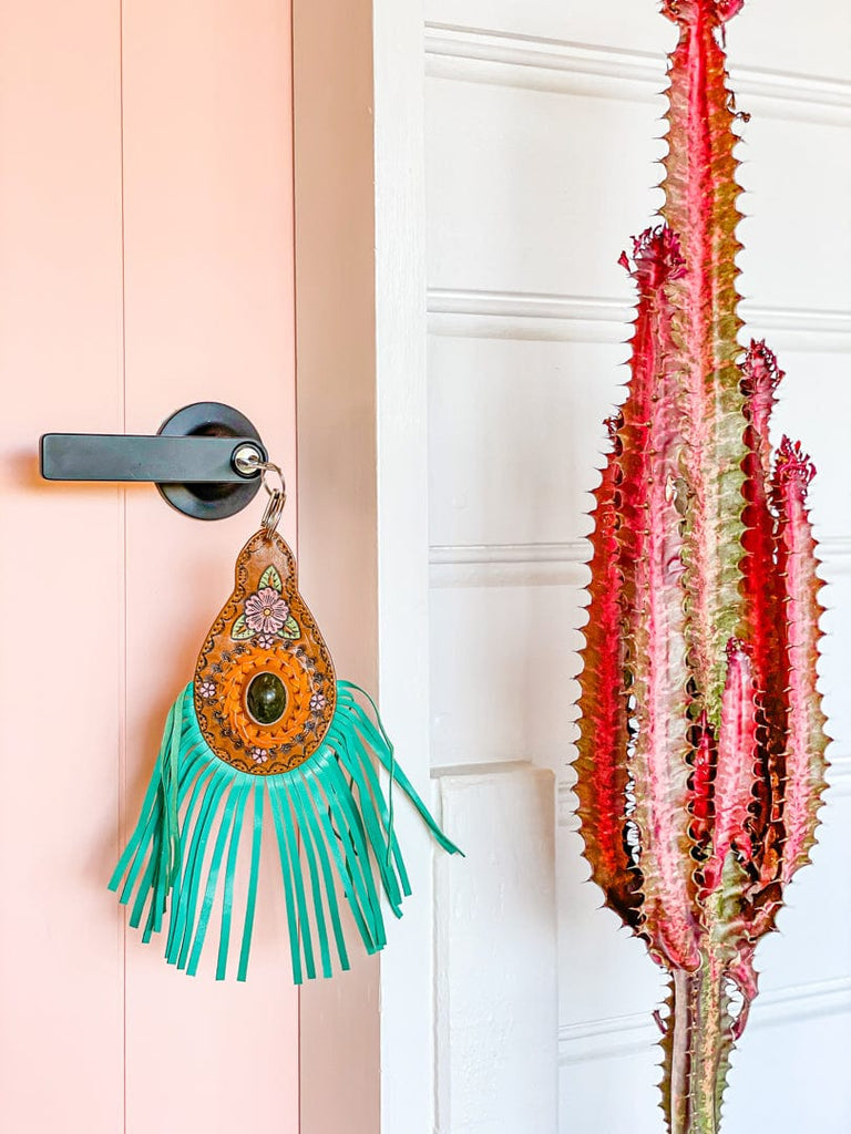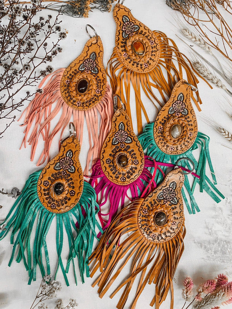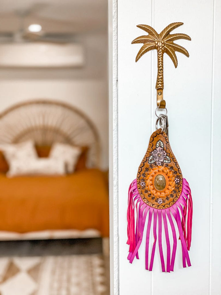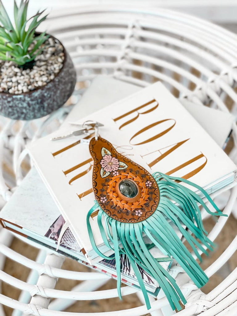 Never lose your keys again with our gorgeous new stone inlay keyring. This oversized charm with tasseled edge will keep your keys secure so you don't need to worry about hunting around in your bag.