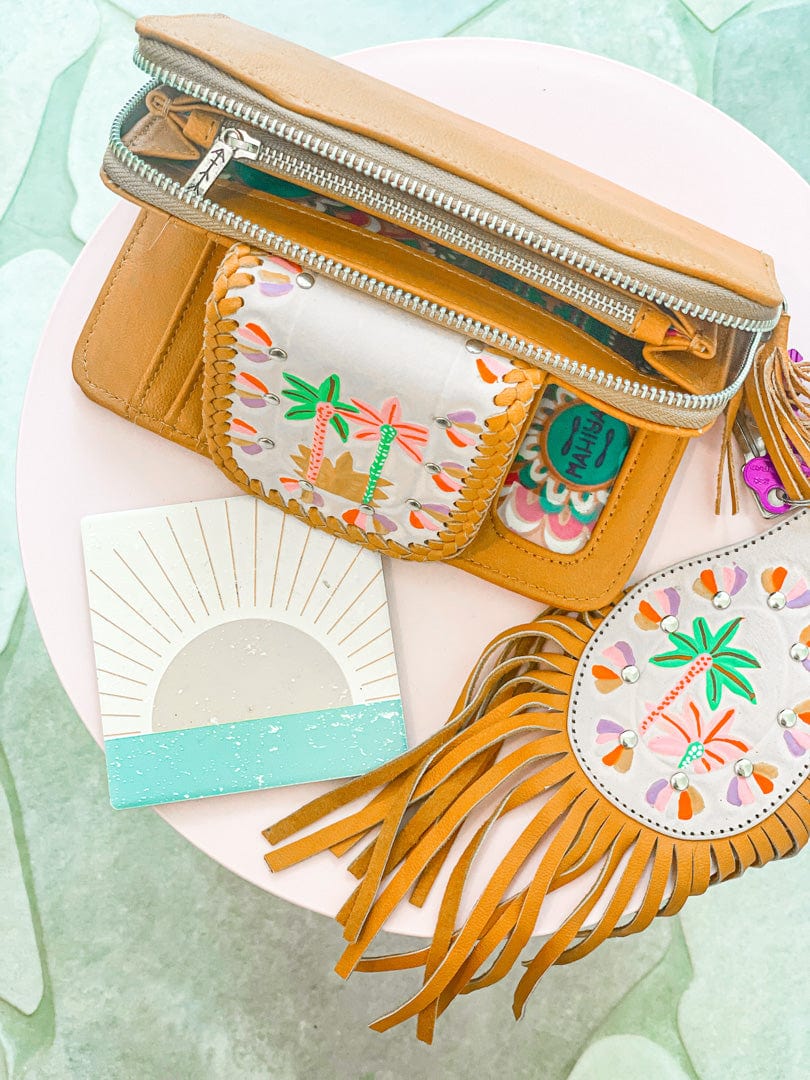 The Palm Beach Purse features an exceptional amount of card space, zip closure and a nifty detachable wrist strap keeping your treasures safe and secure through all your adventures.
