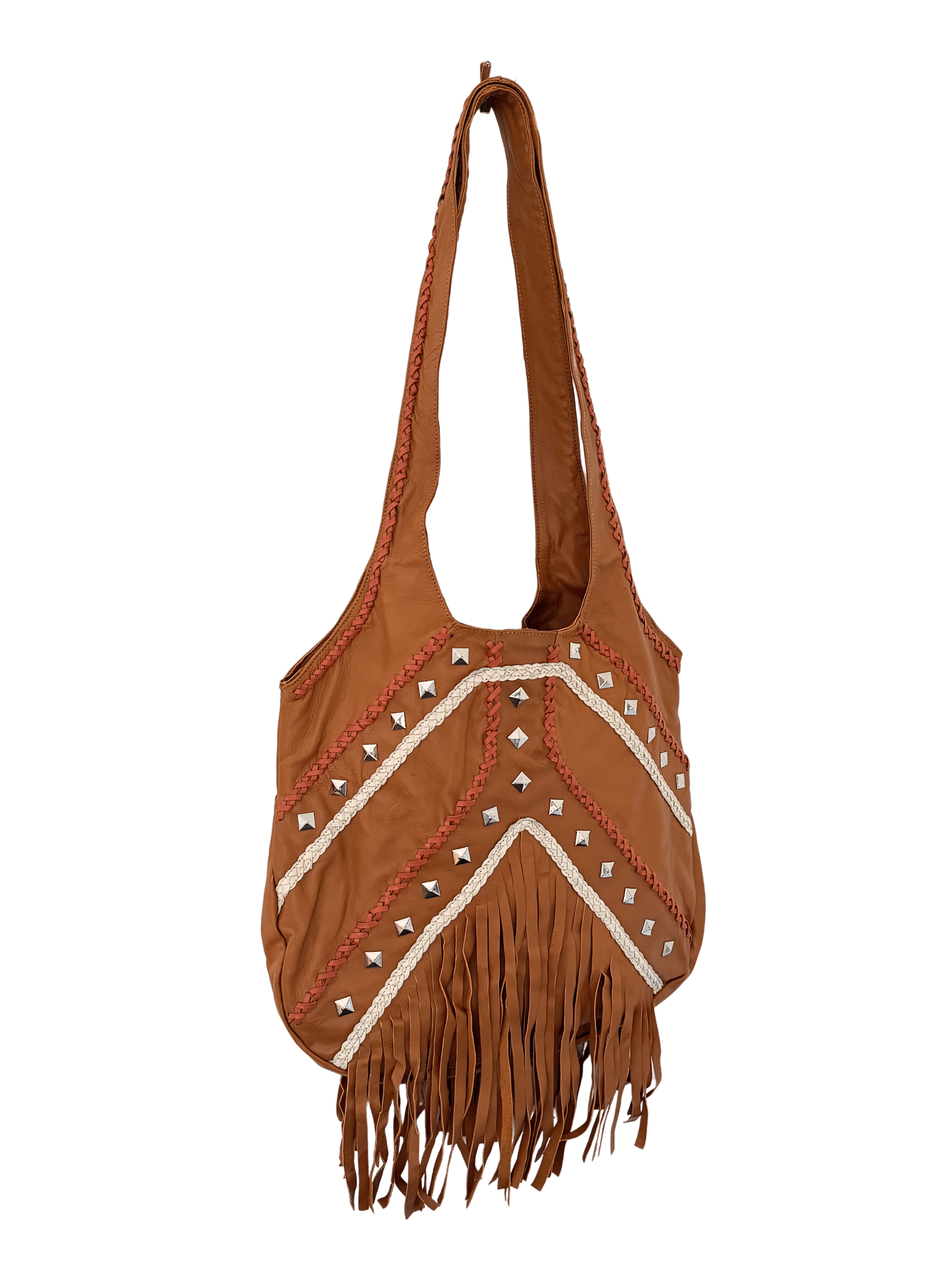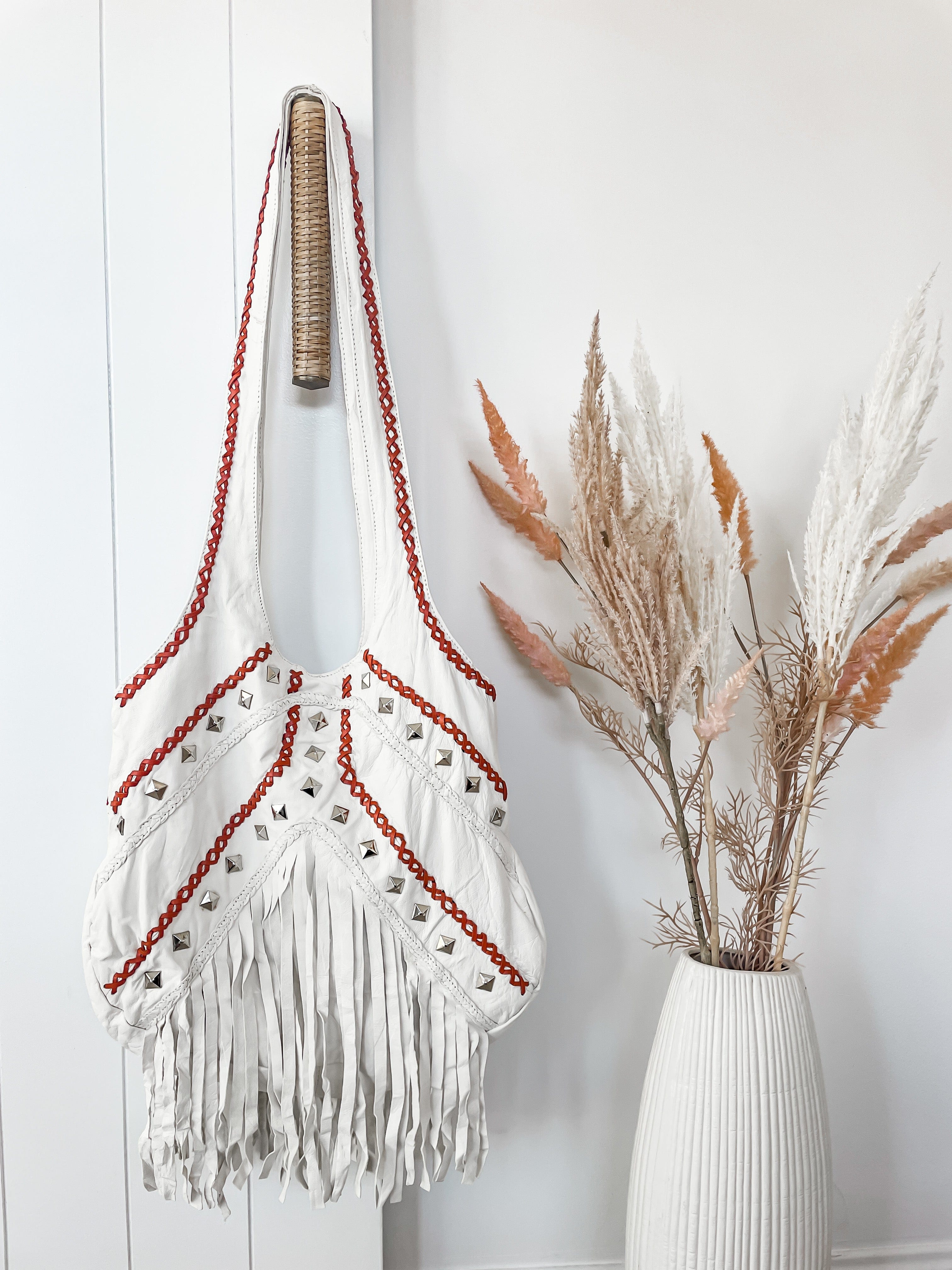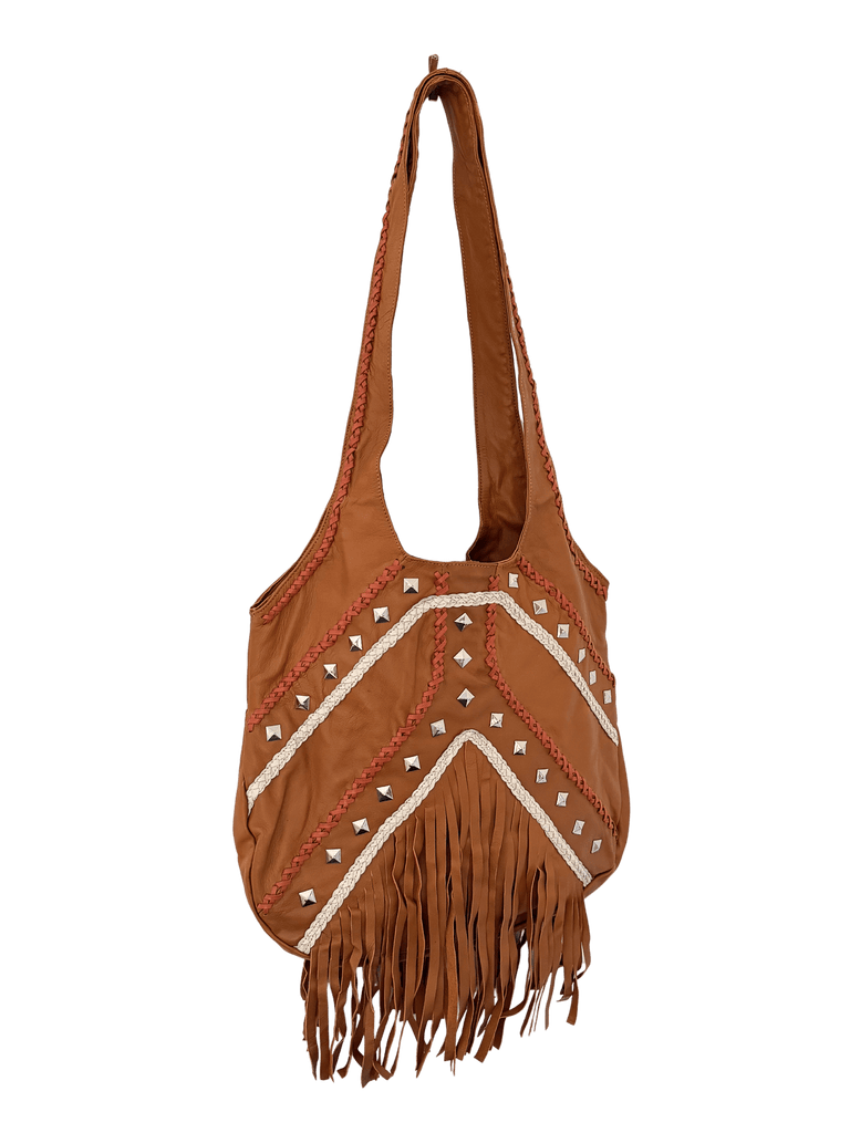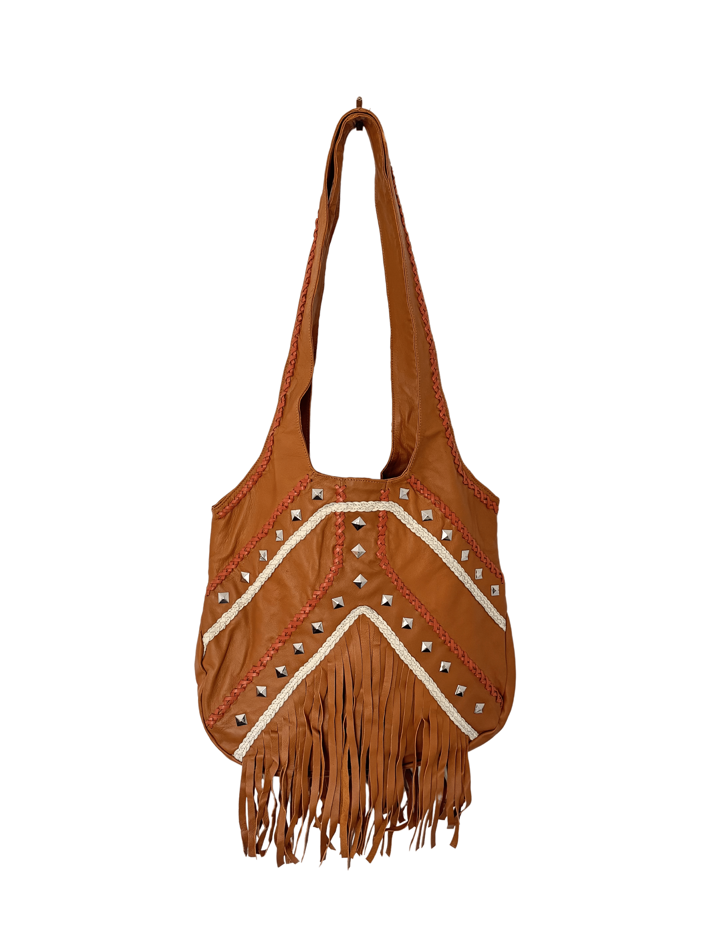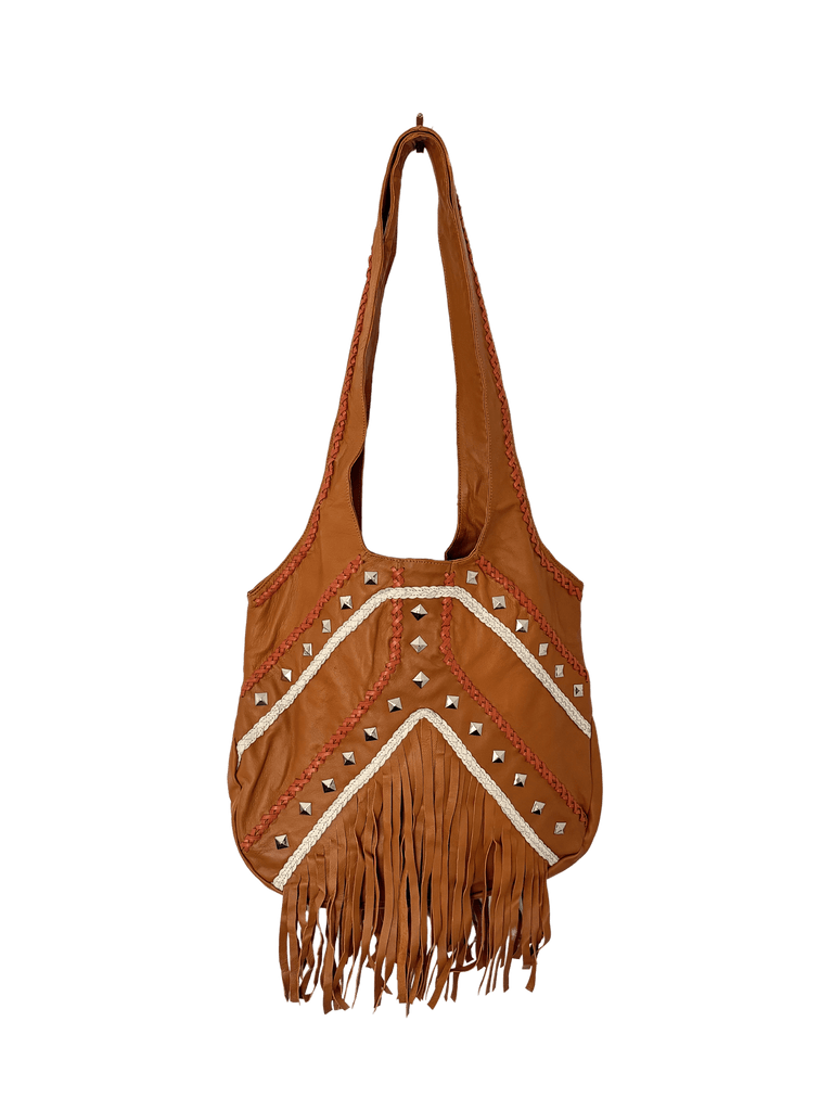 Handcrafted from the softest and most luxe leather, Mika features dual carry handles giving you the ultimate comfort, 3 internal zip pockets, studded details and button closure, making this fringed delight an absolute dream piece.
